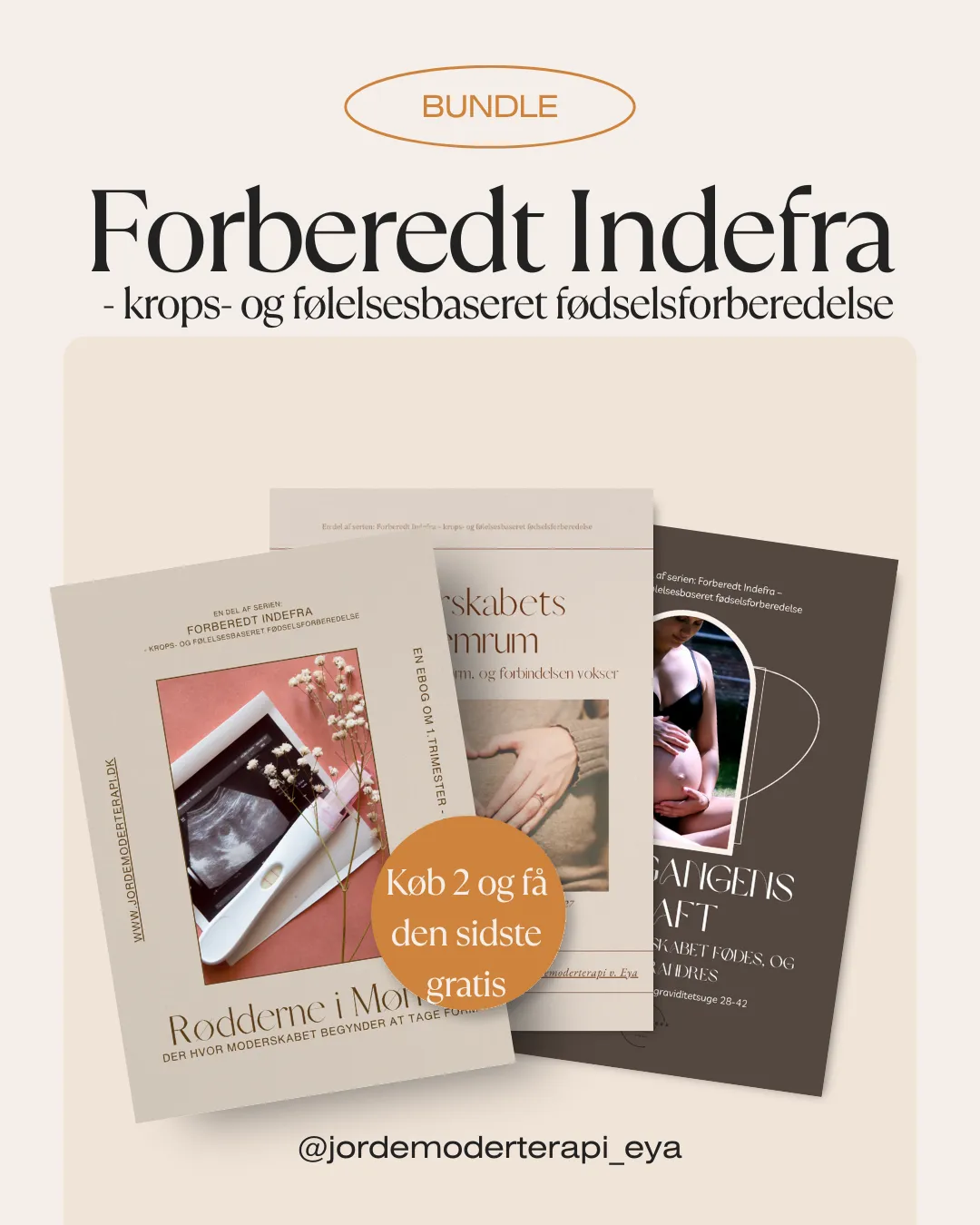Forberedt Indefra er en unik serie af e-bøger, skabt til dig der ønsker en blid, kropslig og følelsesmæssig forberedelse på fødslen – og på det liv der følger efter.